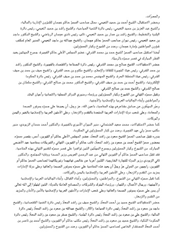 ﺦﻴﺸﻟاو ،ﺔﻳدﺎﺼﺘﻗﻻا ﺔﻴﻤﻨﺘﻟا ةﺮﺋاد ﺲﻴﺋر ّﻌﻤﻟا ﺪﺷار ﻦﺑ ﻒﻴﺳ ﺦﻴﺸﻟاو ،ّﻌﻤﻟا ﺪﻤﺣأ ﻦﺑ ﺪﻴﻤﺣ ﺦﻴﺸﻟا تﻻﺎﺒﻘﺘﺳﻻا ﺮﻀﺣ