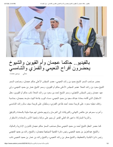 6/17/25, 3:14 PM تارﺎﻣﻹا قرﺑ - ﻲﺳﻣﺎﺷﻟاو يزﻣﻘﻟاو ﻲﻣﯾﻌﻧﻟا حارﻓأ نورﺿﺣﯾ خوﯾﺷﻟاو نﯾوﯾﻘﻟا مأو نﺎﻣﺟﻋ ﺎﻣﻛﺎﺣ ..وﯾدﯾﻔﻟﺎﺑ