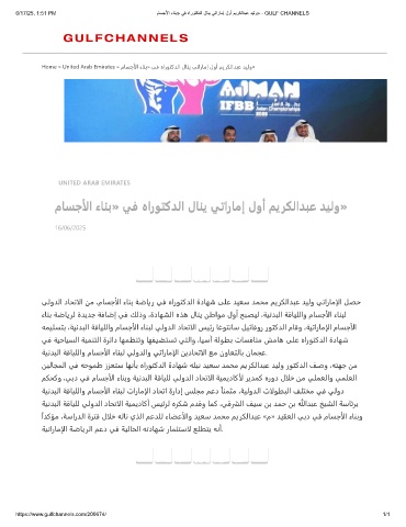 6/17/25, 1:51 PM مﺎﺳﺟﻷا ءﺎﻧﺑ» ﻲﻓ هاروﺗﻛدﻟا لﺎﻧﯾ ﻲﺗارﺎﻣإ لوأ مﯾرﻛﻟادﺑﻋ دﯾﻟو» - GULF CHANNELS