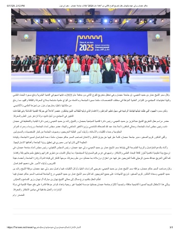 ﻲﻤﻠﻌﻟا ﺚﺤﺒﻟا ةﺮﯿﺴﻣ ﻊﻓدو ﺔﯾﺮﺸﺒﻟا ﺔﯿﻤﻨﺘﻟا ﻲﻓ ﻢﮭﺴﺗ ﺎﮭﻧﺈﻓ ،«2025 مﺎﻋ ﺔﻌﻓد» ﻦﻣ ﻲﻧﺎﺜﻟا جﻮﻔﻟا ﺞﯾﺮﺨﺘﺑ ﻞﻔﺘﺤﺗ ﻲھو نﺎﻤﺠﻋ ﺔﻌﻣﺎﺟ نإ ،ﻲﻤﯿﻌﻨﻟا ﺪﯿﻤﺣ ﻦﺑ رﺎﻤﻋ ﺦﯿﺸﻟا ﻮﻤﺳ لﺎﻗو