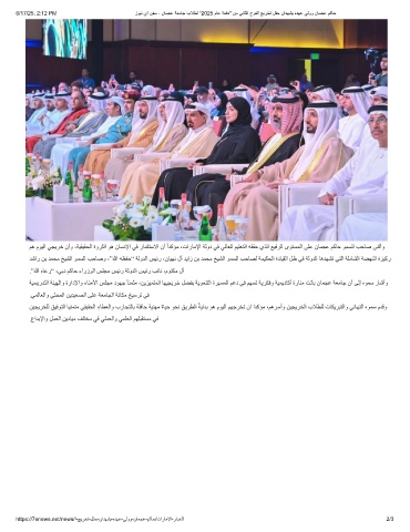 ﻢھ مﻮﯿﻟا ﻲﺠﯾﺮﺧ نأو ،ﺔﯿﻘﯿﻘﺤﻟا ةوﺮﺜﻟا ﻮھ نﺎﺴﻧﻹا ﻲﻓ رﺎﻤﺜﺘﺳﻻا نأ ًاﺪﻛﺆﻣ ،تارﺎﻣﻹا ﺔﻟود ﻲﻓ ﻲﻟﺎﻌﻟا ﻢﯿﻠﻌﺘﻟا ﮫﻘﻘﺣ يﺬﻟا ﻊﯿﻓﺮﻟا ىﻮﺘﺴﻤﻟا ﻰﻠﻋ نﺎﻤﺠﻋ ﻢﻛﺎﺣ ﻮﻤﺴﻟا ﺐﺣﺎﺻ ﻰﻨﺛأو