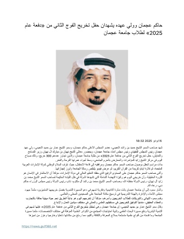 يف مهست اهنإف ،» 2025 ماع ةعفد« نم يناثلا جوفلا جيرختب لفتحت يهو نامجع ةعماج نإ ،يميعنلا ديمح نب رامع خيشلا ومس لاقو