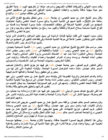 ﻦﻣ ﻲﻧﺎﺜﻟا جﻮﻔﻟا ﺞﯾﺮﺨﺘﺑ ﻞﻔﺘﺤﺗ ﻲھو نﺎﻤﺠﻋ ﺔﻌﻣﺎﺟ نإ ،ﻲﻤﯿﻌﻨﻟا ﺪﯿﻤﺣ ﻦﺑ رﺎﻤﻋ ﺦﯿﺸﻟا ﻮﻤﺳ لﺎﻗو