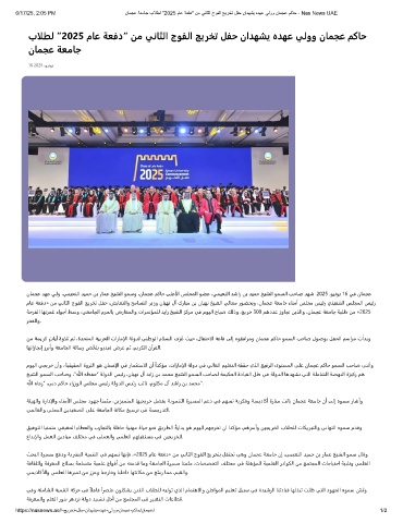 6/17/25, 2:05 PM نﺎﻣﺟﻋ ﺔﻌﻣﺎﺟ بﻼطﻟ "2025 مﺎﻋ ﺔﻌﻓد" نﻣ ﻲﻧﺎﺛﻟا جوﻔﻟا ﺞﯾرﺧﺗ لﻔﺣ نادﮭﺷﯾ هدﮭﻋ ﻲﻟوو نﺎﻣﺟﻋ مﻛﺎﺣ - Nas News UAE