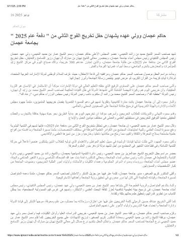 https://www.ajmanmedia.ae/ar/media-center/news/16/6/2025/نﺎﻣﺟﻋ-ﺔﻌﻣﺎﺟﺑ-2025-مﺎﻋ-ﺔﻌﻓد-نﻣ-ﻲﻧﺎﺛﻟا-جوﻔﻟا-ﺞﯾرﺧﺗ-لﻔﺣ-نادﮭﺷﯾ-هدﮭﻋ-ﻲﻟوو-نﺎﻣﺟﻋ-مﻛﺎﺣ 1/2