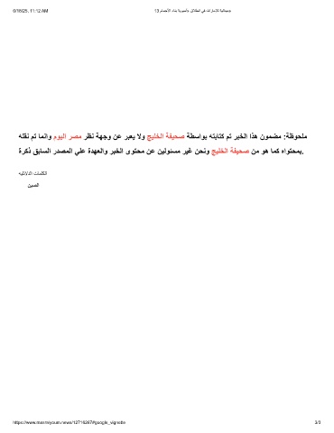 ﮫﻠﻘﻧ مﺗ ﺎﻣﻧاو موﯾﻟا رﺻﻣ رظﻧ ﺔﮭﺟو نﻋ رﺑﻌﯾ ﻻو ﺞﯾﻠﺧﻟا ﺔﻔﯾﺣﺻ ﺔطﺳاوﺑ ﮫﺗﺑﺎﺗﻛ مﺗ رﺑﺧﻟا اذھ نوﻣﺿﻣ :ﺔظوﺣﻠﻣ