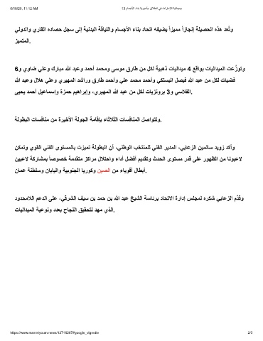 ﺔﻟوطﺑﻟا تﺎﺳﻓﺎﻧﻣ نﻣ ةرﯾﺧﻷا ﺔﻟوﺟﻟا ﺔﻣﺎﻗﺈﺑ ءﺎﺛﻼﺛﻟا تﺎﺳﻓﺎﻧﻣﻟا لﺻاوﺗﺗو.