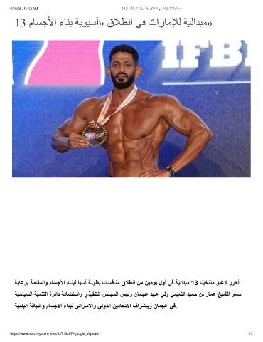ﺔﯾﻧدﺑﻟا ﺔﻗﺎﯾﻠﻟاو مﺎﺳﺟﻷا ءﺎﻧﺑﻟ ﻲﺗارﺎﻣﻹاو ﻲﻟودﻟا نﯾدﺎﺣﺗﻻا فارﺷﺈﺑو نﺎﻣﺟﻋ ﻲﻓ.