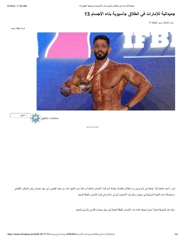 https://www.alkhaleej.ae/2025-06-17/13-ﺔﺿﺎﯾر/ﻲﻠﺣﻣ-ﺔﺿﺎﯾر/5963691-مﺎﺳﺟﻷا-ءﺎﻧﺑ-ﺔﯾوﯾﺳآ-قﻼطﻧا-ﻲﻓ-تارﺎﻣﻺﻟ-ﺔﯾﻟادﯾﻣ 1/2