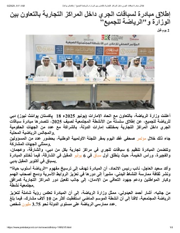 ﻲﺑد (زﻮﯿﻧ ﭧﻨﺋاﻮﭘ نﺎﺘﺴﮐﺎﭘ 18 ء2025 ﻮﯿﻧﻮﯾ) تارﺎﻣﻹا دﺎﺤﺗا ﻊﻣ نوﺎﻌﺘﻟﺎﺑ ،ﺔﺿﺎﯾﺮﻟا ةرازو ﺖﻨﻠﻋأ