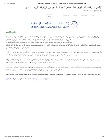 6/20/25, 8:08 AM ﺞﯾﻠﺧﻟا ضﺑﻧ - ”ﻊﯾﻣﺟﻠﻟ ﺔﺿﺎﯾرﻟا"و ةرازوﻟا نﯾﺑ نوﺎﻌﺗﻟﺎﺑ ﺔﯾرﺎﺟﺗﻟا زﻛارﻣﻟا لﺧاد يرﺟﻟا تﺎﻗﺎﺑﺳﻟ ةردﺎﺑﻣ قﻼطإ
