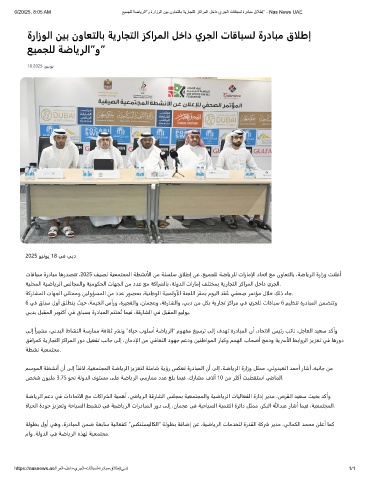6/20/25, 8:05 AM ﻊﯾﻣﺟﻠﻟ ﺔﺿﺎﯾرﻟا"و ةرازوﻟا نﯾﺑ نوﺎﻌﺗﻟﺎﺑ ﺔﯾرﺎﺟﺗﻟا زﻛارﻣﻟا لﺧاد يرﺟﻟا تﺎﻗﺎﺑﺳﻟ ةردﺎﺑﻣ قﻼطإ” - Nas News UAE