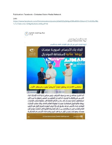 Publication: Facebook – Emirates Vision Media Network Link: https://www.facebook.com/Emiratesvision/posts/pfbid022q5bfquK5Rs4KWmStkemC7mXiX5uMfo 1xTztTbBntrAU1ZHfgX6dA2ktxWBqsP16l