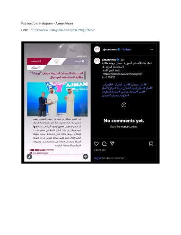 Publication: Instagram – Ajman News Link: https://www.instagram.com/p/DLIMkgRzN92/