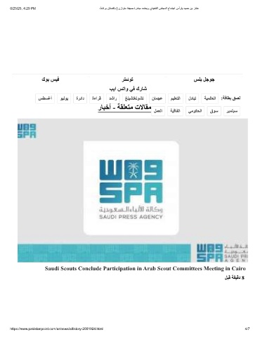 Saudi Scouts Conclude Participation in Arab Scout Committees Meeting in Cairo