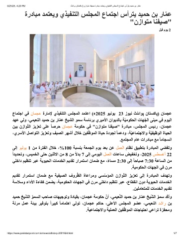 ًاﺪﯾﺪﺤﺗو ،ﺲﯿﻤﺨﻟا ﻰﺘﺣ ﻦﯿﻨﺛﻻا ﻦﻣ 8 ﻦﻣ ًﻻﺪﺑ 7 ﻰﻟإ ﻲﻣﻮﯿﻟا ﻞﻤﻌﻟا تﺎﻋﺎﺳ ﺾﯿﻔﺨﺗو ،2025 ﺲﻄﺴﻏأ 22
