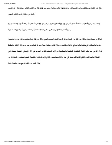 63و ،تﺎﻌﻣﺎﺟ 5و ،ﺔﺻﺎﺧو ﺔﯿﻣﻮﻜﺣ ﺔﺳرﺪﻣ 80 ﻦﻣ ﺮﺜﻛأو ،ﺮﻜﺒﻤﻟا ﻢﯿﻠﻌﺘﻠﻟ ﺔﮭﺟ 62 ﻦﻣ ﺮﺜﻛأ ﻞﻤﺸﺗ ﺔﻠﻣﺎﻜﺘﻣ ﺔﯿﻤﯿﻠﻌﺗ ﺔﯿﻨﺑ ةرﺎﻣﻹا ﻢﻀﺗو
