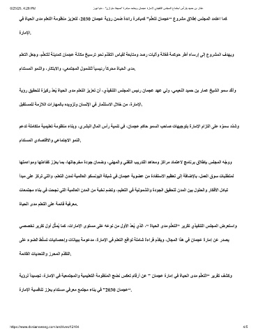 ﻲﻓ ةﺎﯿﺤﻟا ىﺪﻣ ﻢﻠﻌﺘﻟا ﺔﻣﻮﻈﻨﻣ ﺰﯾﺰﻌﺘﻟ ،2030 نﺎﻤﺠﻋ ﺔﯾؤر ﻦﻤﺿ ةﺪﺋار ةردﺎﺒﻤﻛ ”ﻢّﻠﻌﺘﺗ نﺎﻤﺠﻋ“ عوﺮﺸﻣ قﻼطإ ﺲﻠﺠﻤﻟا ﺪﻤﺘﻋا ﺎﻤﻛ