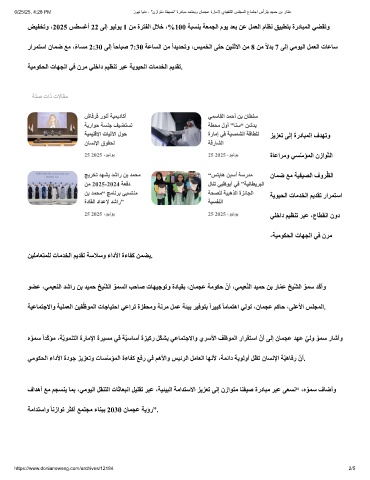 ﺾﯿﻔﺨﺗو ،2025 ﺲﻄﺴﻏأ 22 ﻰﻟإ ﻮﯿﻟﻮﯾ 1 ﻦﻣ ةﺮﺘﻔﻟا لﻼﺧ ،%100 ﺔﺒﺴﻨﺑ ﺔﻌﻤﺠﻟا مﻮﯾ ﺪﻌﺑ ﻦﻋ ﻞﻤﻌﻟا مﺎﻈﻧ ﻖﯿﺒﻄﺘﺑ ةردﺎﺒﻤﻟا ﻲﻀﻘﺗو
