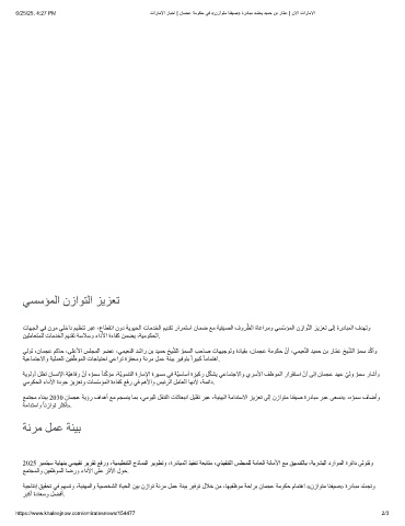 ﺔﯿﺟﺎﺘﻧإ ﻖﯿﻘﺤﺗ ﻲﻓ ﻢﮭﺴﺗو ،ﺔﯿﻨﮭﻤﻟاو ﺔﯿﺼﺨﺸﻟا ةﺎﯿﺤﻟا ﻦﯿﺑ نزاﻮﺗ ﺔﻧﺮﻣ ﻞﻤﻋ ﺔﺌﯿﺑ ﺮﯿﻓﻮﺗ لﻼﺧ ﻦﻣ ،ﺎﮭﯿﻔظﻮﻣ ﺔﺣاﺮﺑ نﺎﻤﺠﻋ ﺔﻣﻮﻜﺣ مﺎﻤﺘھا «نزاﻮﺘﻣ ﺎﻨﻔﯿﺻ» ةردﺎﺒﻣ ﺪّﺴﺠﺗو