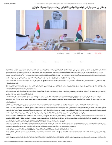 6/25/25, 4:19 PM نزاوﺗﻣ ﺎﻧﻔﯾﺻ» ةردﺎﺑﻣ دﻣﺗﻌﯾو يذﯾﻔﻧﺗﻟا سﻠﺟﻣﻟا عﺎﻣﺗﺟا سأرﺗﯾ دﯾﻣﺣ نﺑ رﺎّﻣﻋ | ﮫﯾﺗارﺎﻣﻹا رﺟﻔﻟا ةدﯾرﺟ | ﮫﯾﺗارﺎﻣﻹا رﺟﻔﻟا ةدﯾرﺟ»