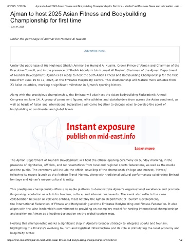 6/16/25, 3:32 PM Ajman to host 2025 Asian Fitness and Bodybuilding Championship for first time - Middle East Business News and Information - mid…