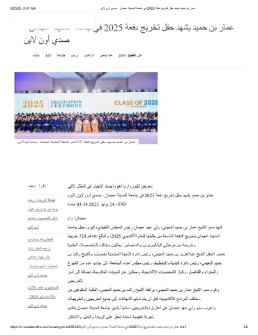 ﻦﻳﻻ نوأ يﺪﺻ - نﺎﻤﺠﻋ ﺔﻨﻳﺪﻤﻟا ﺔﻌﻣﺎﺟ ﻲﻓ 2025 ﺔﻌﻓد ﺞﻳﺮﺨﺗ ﻞﻔﺣ ﺪﮫﺸﻳ ﺪﯿﻤﺣ ﻦﺑ رﺎﻤﻋ