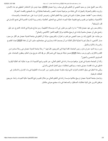 6/26/25, 9:07 AM تﻧﯾوﺑ ودرأ - نﺎﻣﺟﻋ ﺔﻧﯾدﻣﻟا ﺔﻌﻣﺎﺟ ﻲﻓ 2025 ﺔﻌﻓد ﺞﯾرﺧﺗ لﻔﺣ دﮭﺷﯾ دﯾﻣﺣ نﺑ رﺎﻣﻋ