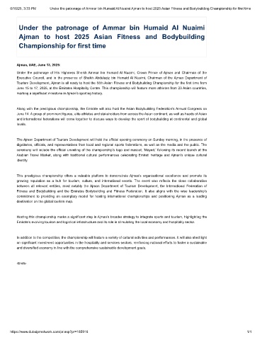 6/16/25, 3:33 PM Under the patronage of Ammar bin Humaid Al Nuaimi Ajman to host 2025 Asian Fitness and Bodybuilding Championship for first time