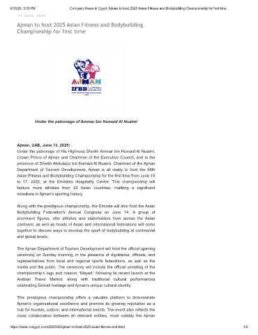 6/16/25, 3:33 PM Company News in Egypt: Ajman to host 2025 Asian Fitness and Bodybuilding Championship for first time