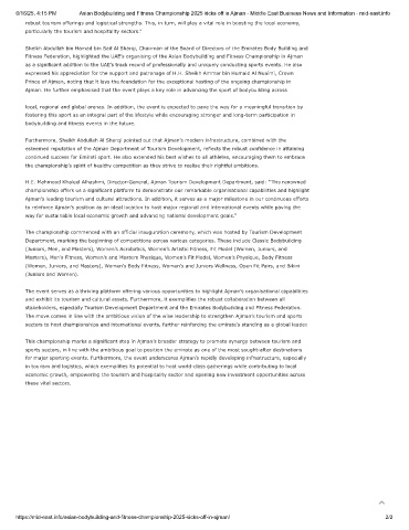 for major sporting events. Furthermore, the event underscores Ajman’s rapidly developing infrastructure, especially