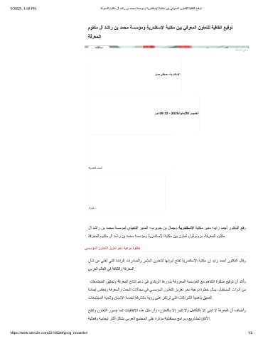 5/30/25, 1:58 PM ﺔﻓرﻌﻣﻠﻟ موﺗﻛﻣ لآ دﺷار نﺑ دﻣﺣﻣ ﺔﺳﺳؤﻣو ﺔﯾردﻧﻛﺳﻹا ﺔﺑﺗﻛﻣ نﯾﺑ ﻲﻓرﻌﻣﻟا نوﺎﻌﺗﻠﻟ ﺔﯾﻗﺎﻔﺗا ﻊﯾﻗوﺗ