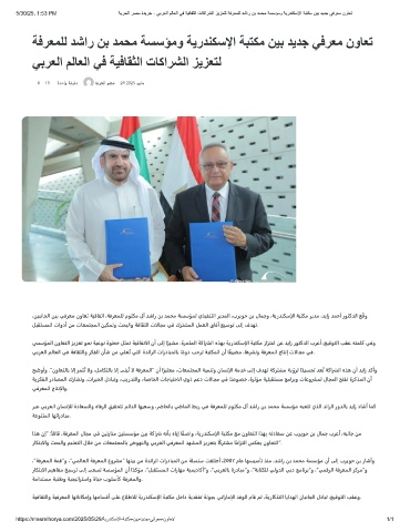 5/30/25, 1:53 PM ﺔﯾرﺣﻟا رﺻﻣ ةدﯾرﺟ - ﻲﺑرﻌﻟا مﻟﺎﻌﻟا ﻲﻓ ﺔﯾﻓﺎﻘﺛﻟا تﺎﻛارﺷﻟا زﯾزﻌﺗﻟ ﺔﻓرﻌﻣﻠﻟ دﺷار نﺑ دﻣﺣﻣ ﺔﺳﺳؤﻣو ﺔﯾردﻧﻛﺳﻹا ﺔﺑﺗﻛﻣ نﯾﺑ دﯾدﺟ ﻲﻓرﻌﻣ نوﺎﻌﺗ