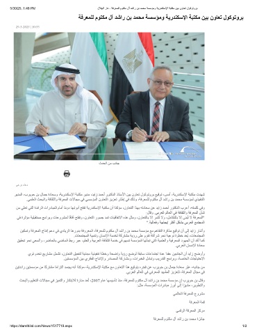 5/30/25, 1:48 PM لﻼﮭﻟا راد - ﺔﻓرﻌﻣﻠﻟ موﺗﻛﻣ لآ دﺷار نﺑ دﻣﺣﻣ ﺔﺳﺳؤﻣو ﺔﯾردﻧﻛﺳﻹا ﺔﺑﺗﻛﻣ نﯾﺑ نوﺎﻌﺗ لوﻛوﺗورﺑ