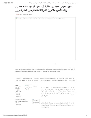 5/30/25, 1:48 PM ءﺎﺳﻣﻟا ةدﯾرﺟ - ﻲﺑرﻌﻟا مﻟﺎﻌﻟا ﻲﻓ ﺔﯾﻓﺎﻘﺛﻟا تﺎﻛارﺷﻟا زﯾزﻌﺗﻟ ﺔﻓرﻌﻣﻠﻟ دﺷار نﺑ دﻣﺣﻣ ﺔﺳﺳؤﻣو ﺔﯾردﻧﻛﺳﻹا ﺔﺑﺗﻛﻣ نﯾﺑ دﯾدﺟ ﻲﻓرﻌﻣ نوﺎﻌﺗ