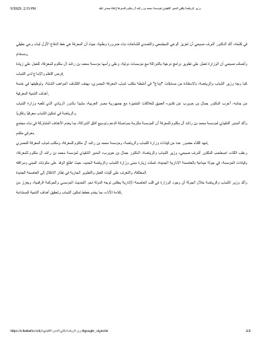 بﺎﺑﺷﻟا ةرازو ﮫﺑﻌﻠﺗ يذﻟا يدﺎﯾرﻟا رودﻟﺎﺑ اًدﯾﺷﻣ ،ﺔﯾﺑرﻌﻟا رﺻﻣ ﺔﯾروﮭﻣﺟ ﻊﻣ ةزﯾﻣﺗﻣﻟا تﺎﻗﻼﻌﻠﻟ ﻖﯾﻣﻌﻟا هرﯾدﻘﺗ نﻋ برﯾوﺣ نﺑ لﺎﻣﺟ روﺗﻛدﻟا برﻋأ ،ﮫﺑﻧﺎﺟ نﻣ