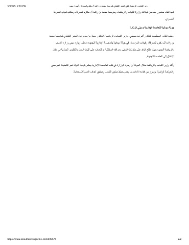 5/30/25, 2:10 PM رﺻﻣ لوﺻأ - ﺔﻓرﻌﻣﻠﻟ موﺗﻛﻣ لآ دﺷار نﺑ دﻣﺣﻣ ﺔﺳﺳؤﻣﻟ يذﯾﻔﻧﺗﻟا رﯾدﻣﻟا ﻲﻘﺗﻠﯾ ﺔﺿﺎﯾرﻟاو بﺎﺑﺷﻟا رﯾزو