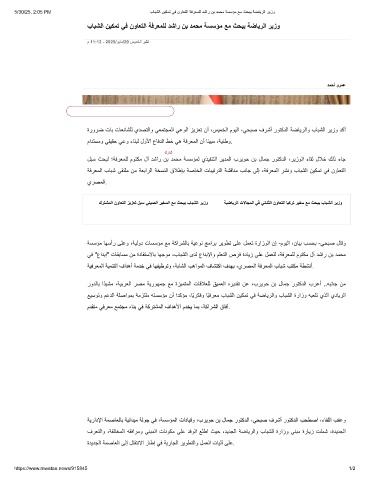 5/30/25, 2:05 PM بﺎﺑﺷﻟا نﯾﻛﻣﺗ ﻲﻓ نوﺎﻌﺗﻟا ﺔﻓرﻌﻣﻠﻟ دﺷار نﺑ دﻣﺣﻣ ﺔﺳﺳؤﻣ ﻊﻣ ثﺣﺑﯾ ﺔﺿﺎﯾرﻟا رﯾزو