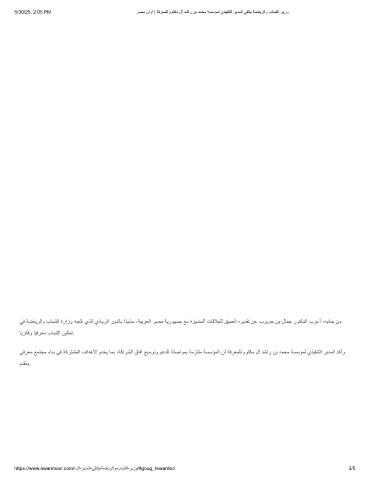 5/30/25, 2:05 PM رﺻﻣ ناوا | ﺔﻓرﻌﻣﻠﻟ موﺗﻛﻣ لآ دﺷار نﺑ دﻣﺣﻣ ﺔﺳﺳؤﻣﻟ يذﯾﻔﻧﺗﻟا رﯾدﻣﻟا ﻲﻘﺗﻠﯾ ﺔﺿﺎﯾرﻟاو بﺎﺑﺷﻟا رﯾزو