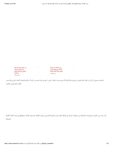 5/30/25, 2:05 PM رﺻﻣ ناوا | ﺔﻓرﻌﻣﻠﻟ موﺗﻛﻣ لآ دﺷار نﺑ دﻣﺣﻣ ﺔﺳﺳؤﻣﻟ يذﯾﻔﻧﺗﻟا رﯾدﻣﻟا ﻲﻘﺗﻠﯾ ﺔﺿﺎﯾرﻟاو بﺎﺑﺷﻟا رﯾزو
