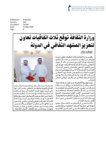 Publication: Al Wahda Country: UAE Circulation: 19,400 Date: 16 May 2025 Page: 6