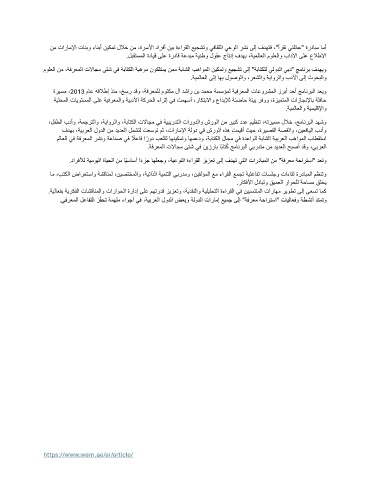 نم تاراملإا تانبو ءانبأ نيكمت للاخ نم ،ةرسلأا دارفأ نيب ةءارقلا عيجشتو يفاقثلا يعولا رشن ىلإ فدهتف ،"أرقت يتلئاع" ةردابم امأ