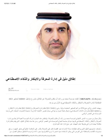 ISO ﺮﯿﯾﺎﻌﻤﻟ MBRF ﻞﯿﻟد)) عوﺮﺸﻣ قﻼطإ ﻦﻋ ﺔﻓﺮﻌﻤﻠﻟ مﻮﺘﻜﻣ لآ ﺪﺷار ﻦﺑ ﺪﻤﺤﻣ ﺔﺴﺳﺆﻣ ﺖﻨﻠﻋأ (MENAFN- Al-Bayan)