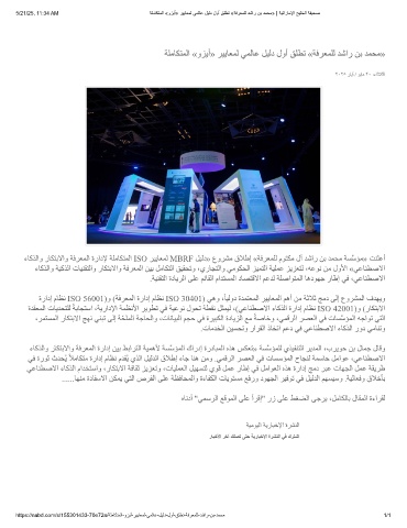 ءﺎﻛﺬﻟاو رﺎﻜﺘﺑﻻاو ﺔﻓﺮﻌﻤﻟا ةرادﻹ ﺔﻠﻣﺎﻜﺘﻤﻟا ISO ﺮﯿﯾﺎﻌﻤﻟ MBRF ﻞﯿﻟد» عوﺮﺸﻣ قﻼطإ «ﺔﻓﺮﻌﻤﻠﻟ مﻮﺘﻜﻣ لآ ﺪﺷار ﻦﺑ ﺪﻤﺤﻣ ﺔﺴﱠﺳﺆﻣ» ﺖﻨﻠﻋأ