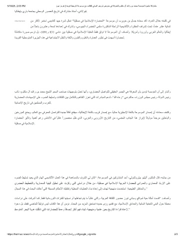 ﺔﻠﻣﺎﻜﺘﻣ ةرﻮﺻ ﻢﺳﺮﺗ ﻞﺑ ،1091و 831 ﻲﻣﺎﻋ ﻦﯿﺑ ﺔﯿﻠﻘﺻ ﻲﻓ ﺔﯿﻣﻼﺳﻹا ﺔﺒﻘﺤﻟا ﻂﻘﻓ ﻖﺛﻮﺗ ﻻ ﺔﻋﻮﺳﻮﻤﻟا نأ فﺎﺿأو .ﺎﻜﯾﺮﻣأو ﺎﺑوروأو ﻲﺑﺮﻌﻟا ﻢﻟﺎﻌﻟاو ﺎﯿﻟﺎﻄﯾإ