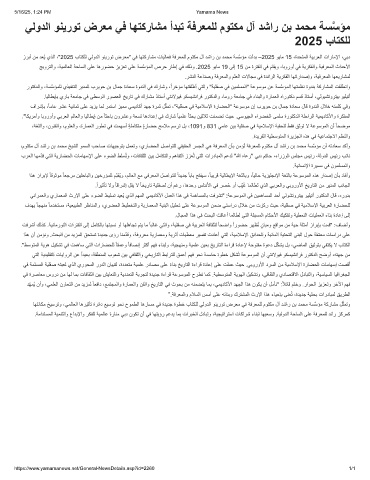 زرﺑأ نﻣ دﻌُﯾ يذﻟا ،"2025 بﺎﺗﻛﻠﻟ ﻲﻟودﻟا وﻧﯾروﺗ ضرﻌﻣ" ﻲﻓ ﺎﮭﺗﻛرﺎﺷﻣ تﺎﯾﻟﺎﻌﻓ ﺔﻓرﻌﻣﻠﻟ موﺗﻛﻣ لآ دﺷار نﺑ دﻣﺣﻣ ﺔﺳﱠﺳؤﻣ تأدﺑ –2025 وﯾﺎﻣ 15 ،ةدﺣﺗﻣﻟا ﺔﯾﺑرﻌﻟا تارﺎﻣﻹا ،ﻲﺑد