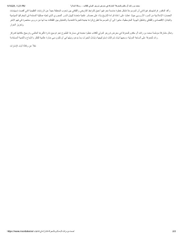 5/16/25, 1:21 PM “مﻼﺳﻟا ﺔﻟﺎﺳر – بﺎﺗﻛﻠﻟ ﻲﻟودﻟا وﻧﯾروﺗ ضرﻌﻣ ﻲﻓ كرﺎﺷﺗ ”ﺔﻓرﻌﻣﻠﻟ موﺗﻛﻣ لآ دﺷار نﺑ دﻣﺣﻣ