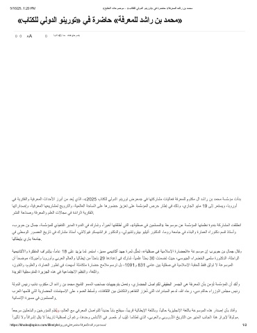 5/16/25, 1:20 PM «ﺞﯾﻠﺧﻟا تﺎﻋوﺿوﻣ - «بﺎﺗﻛﻠﻟ ﻲﻟودﻟا وﻧﯾروﺗ» ﻲﻓ ةرﺿﺎﺣ «ﺔﻓرﻌﻣﻠﻟ دﺷار نﺑ دﻣﺣﻣ