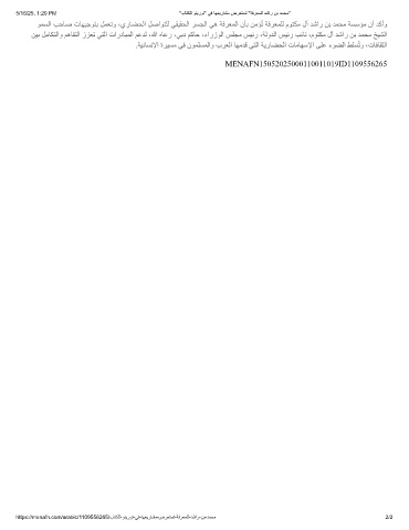 5/16/25, 1:20 PM "بﺎﺗﻛﻠﻟ وﻧﯾروﺗ" ﻲﻓ ﺎﮭﻌﯾرﺎﺷﻣ ضرﻌﺗﺳﺗ "ﺔﻓرﻌﻣﻠﻟ دﺷار نﺑ دﻣﺣﻣ"