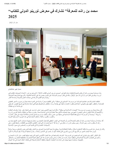 5/16/25, 1:19 PM “رﺎﺑﺧﻸﻟ رﺎﺑﺳﻣ – 2025 بﺎﺗﻛﻠﻟ ﻲﻟودﻟا وﻧﯾروﺗ ضرﻌﻣ ﻲﻓ كرﺎﺷﺗ ”ﺔﻓرﻌﻣﻠﻟ دﺷار نﺑ دﻣﺣﻣ